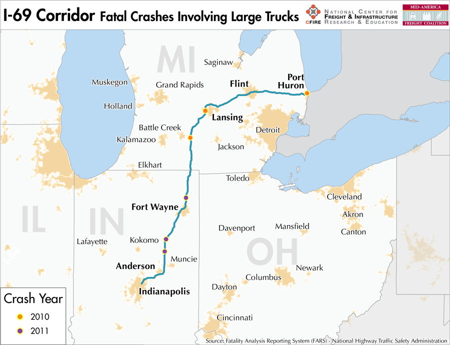 I-69 is a 361-mile corridor that crosses two states in the MAFC: Michigan and Indiana.
